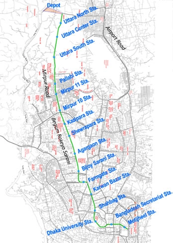 Dhaka, the capital city of Bangladesh, has an even higher urban population density than cities in ASEAN and surrounding countries. Its population growth has outstripped capacity, causing a number of social problems. One solution being implemented to alleviate those problems is an urban transport plan, the centerpiece of which is the Dhaka MRT Line 6 construction project. Nippon Koei received the order for this project as the leader of NKDM Association, a consortium of foreign and Bangladeshi companies.* The project, which will introduce the first mass rapid transit (MRT) in Bangladesh, will create a 20 km railway running north to south through Dhaka, and is expected to bring dramatic changes to the overcrowded city. When the entire line opens, it is expected to carry approximately 500 thousand passengers per day. Nippon Koei, in cooperation with its Group companies, is working on the architectural design of elevated structures, flood analysis, modification design of crossings, development around train stations, and more. The entire line is scheduled to open in 2021. Besides relieving traffic congestion, this project will also help to support the urban living environment and enhance lifestyles in the city.